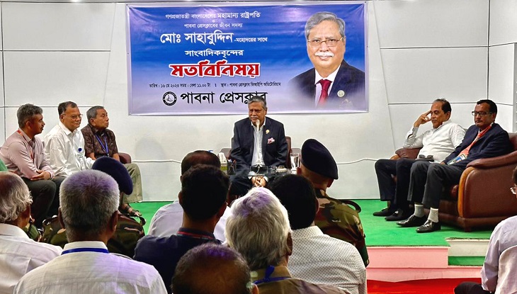 অনলাইন ডেস্ক : অনির্বাচিত সরকারের কোনো সুযোগ নেই, সংবিধান অনুযায়ী স্বাধীন কমিশন নিরপেক্ষ নির্বাচন করবে বলে জানিয়েছেন রাষ্ট্রপতি মো. সাহাবুদ্দিন চুপ্পু। আজ বুধবার (১৭ মে) দুপুরে পাবনার ডায়াবেটিক সমিতি পরিদর্শনে