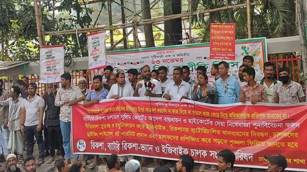 ঢাকা মহানগরে ব্যাটারিচালিত রিকশা চলাচল বন্ধে উচ্চ আদালতের দেওয়া নির্দেশ পুনর্বিবেচনা করে নতুন নীতিমালা চূড়ান্ত করতে সাত দিনের আল্টিমেটাম দিয়েছেন রিকশা, ব্যাটারি রিকশা-ভ্যান ও ইজিবাইক চালক সংগ্রাম পরিষদ। অন্যথায় আগামী