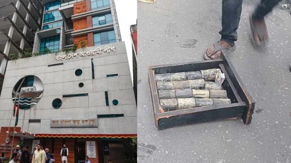 রাজধানীর গুলিস্তানের বঙ্গবন্ধুর আওয়ামী লীগ কেন্দ্রীয় কার্যালয় হতে বেশ কয়েকটি হাত বোমা উদ্ধার করেছে উৎসুক জনতা।বৃহস্পতিবার (৮ আগস্ট) বিকেল পৌনে ৬টার দিকে কয়েকজনকে একটি টেবিলের ড্রয়ার নিয়ে বের হয়ে আসতে