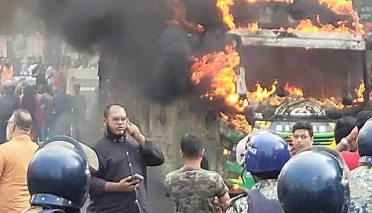 রাজধানীর শাহজাদপুরে রাইদা পরিবহনের বাসে আগুন