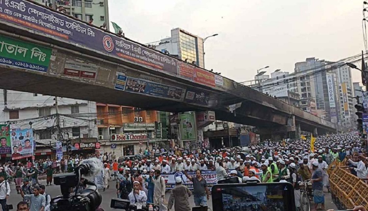 পুলিশের বাঁধায় রাজধানীর শান্তিনগর মোড়ে শেষ ইসলামী আন্দোলনের গণমিছিল