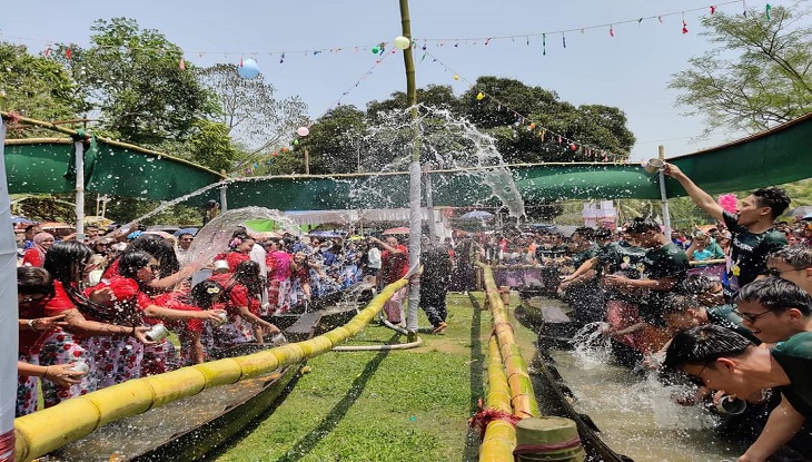 রাঙামাটি জেলায় মাসস এর উদ্যোগে ঐতিহ্যবাহী জল উৎসবে মাঠময় তরুণ-তরুণীদের ঢল
