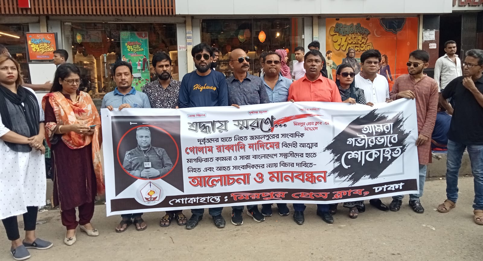 সাংবাদিক নাদিম হত্যার প্রতিবাদে মিরপুর প্রেসক্লাবের মানববন্ধন