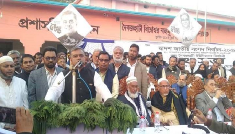 এম এইচ শান্ত বাগেরহাট জেলা প্রতিনিধি : দৈবজ্ঞহাটি বিশেশ্বর বহুমুখী মাধ্যমিক বিদ্যালয় মাঠে নৌকা মার্কার নির্বাচনী পথসভা। বাগেরহাট-৪ আসনের ওয়ার্ডে ওয়ার্ডে লিফলেট বিতরণ ও গণসংযোগ করেন এইচ এম বদিউজ্জামান সোহাগ।